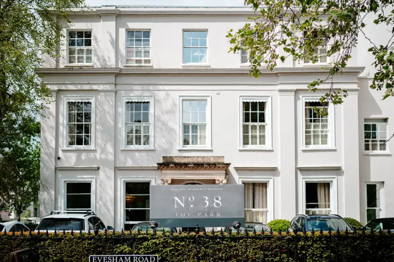 Nestled in a leafy corner of Pittville, just opposite Cheltenham’s beautiful Pittville Park and a stone’s throw from the racecourse, No. 38 The Park is a boutique hideaway housed within a regally restored Georgian townhouse. This intimate retreat offers just 13 individually designed bedrooms, each showcasing bold statement prints, antique furnishings, and one-off artworks that strike the perfect balance of character and comfort. Rooms are thoughtfully equipped with modern comforts such as Nespresso machines, Dyson fans or hairdryers, mini-bars, and luxurious Bramley toiletries—while Excellent bedrooms even boast indulgent free-standing baths