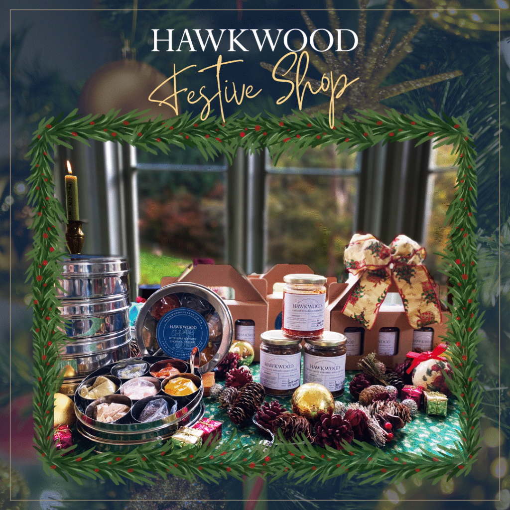 Our festive gift shop is now open, with a delightful mix of gifts and treats to make your season extra special! You’ll find Hawkwood’s own jams, juices, and recipe kits prepared by our chefs, alongside our best-selling shawls and warm socks to keep cosy. In addition, browse a range of festive items, including advent calendars, artisan chocolates, and an assortment of locally crafted gifts. Open during business hours, our shop has something for everyone, perfect for finding unique and thoughtful gifts for loved ones.